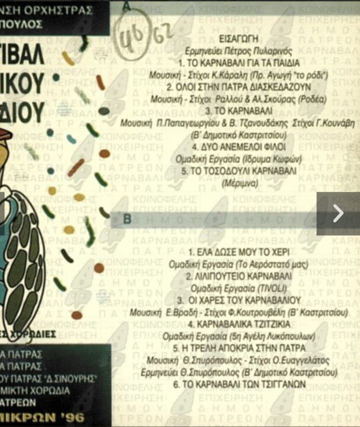 Η Παιδική Χορωδία της Πολυφωνικής θα παρουσιάσει και τα δύο πρώτα τραγούδια του Φεστιβάλ (1996): «Όλοι στην Πάτρα διασκεδάζουν» και «Το Καρναβάλι για τα παιδιά»…